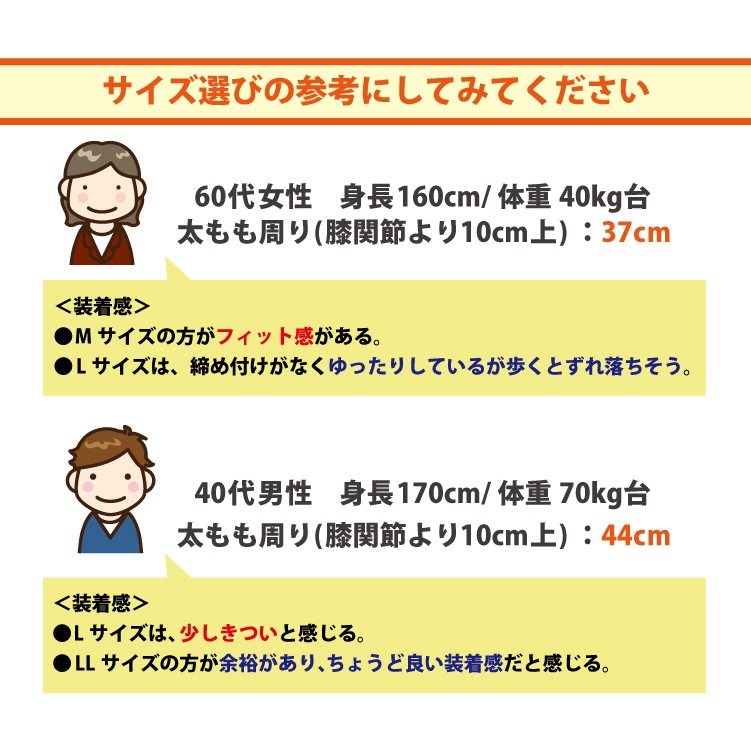 サイズ:太もも周り(膝関節より10cm上)